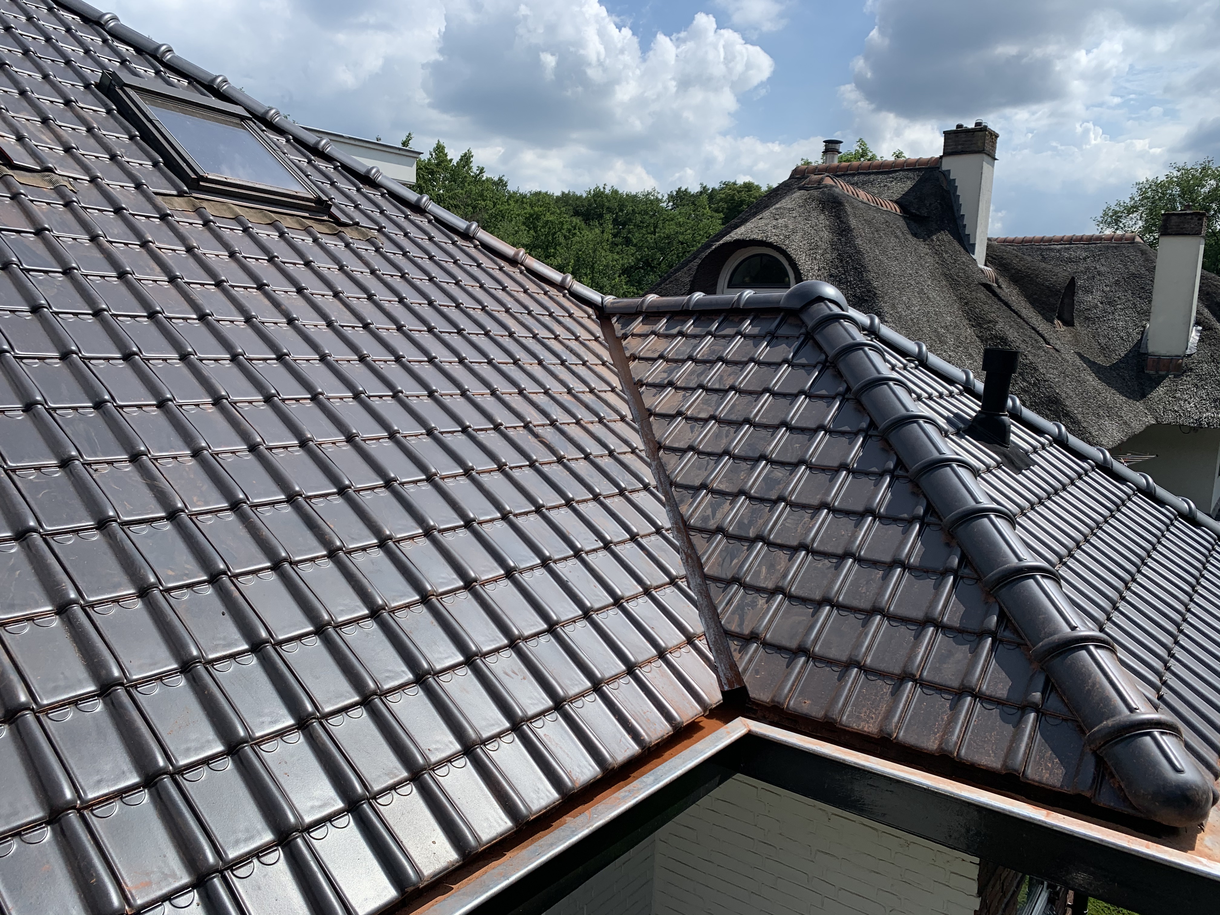 We hebben alle dakpannen, panlatten en tengels verwijderd. Waar nodig is het dakbeschot gerepareerd. Rondom zijn er nieuwe zinken dakgoten geplaatst alsook dampopen dakfolie.