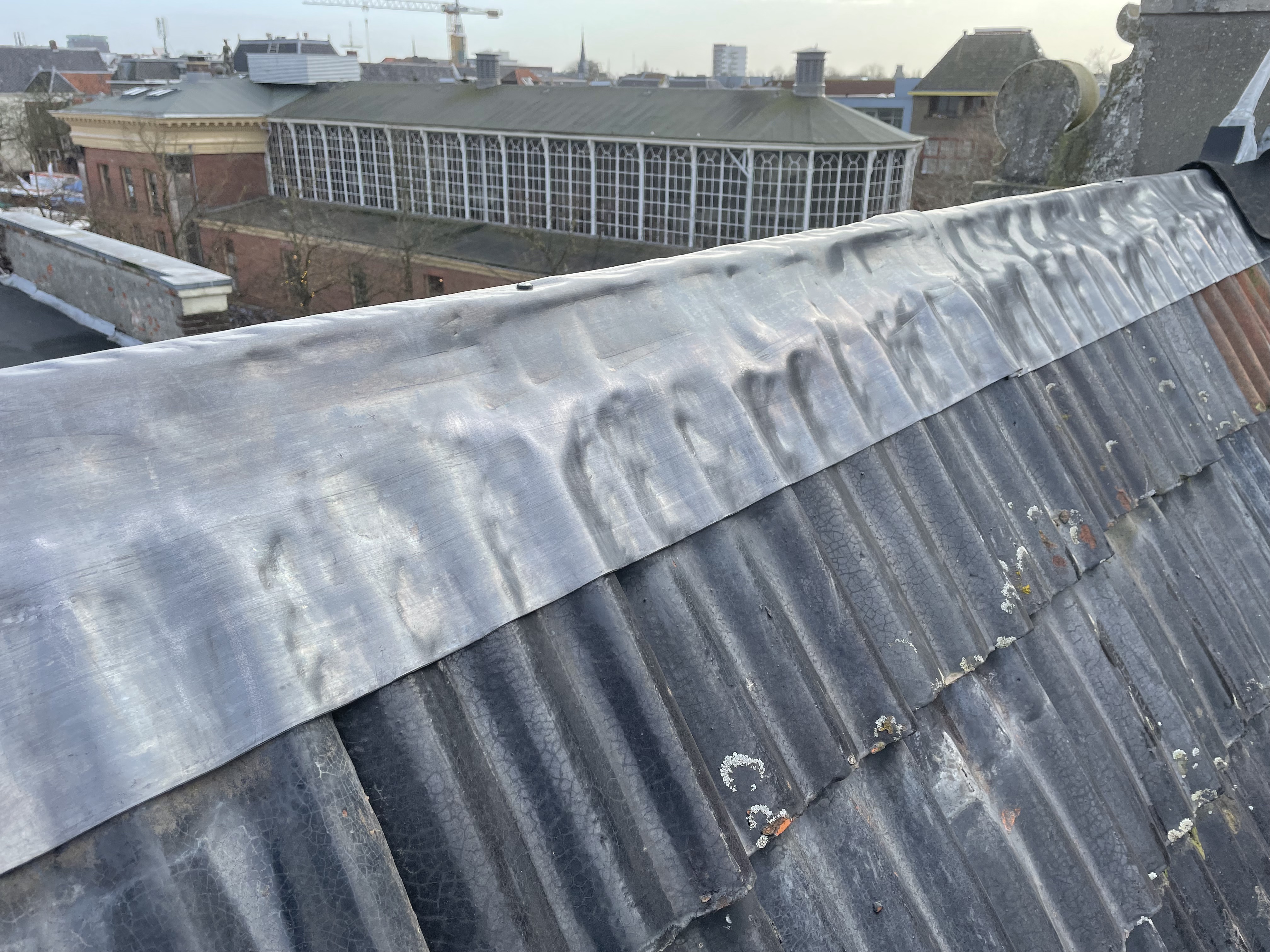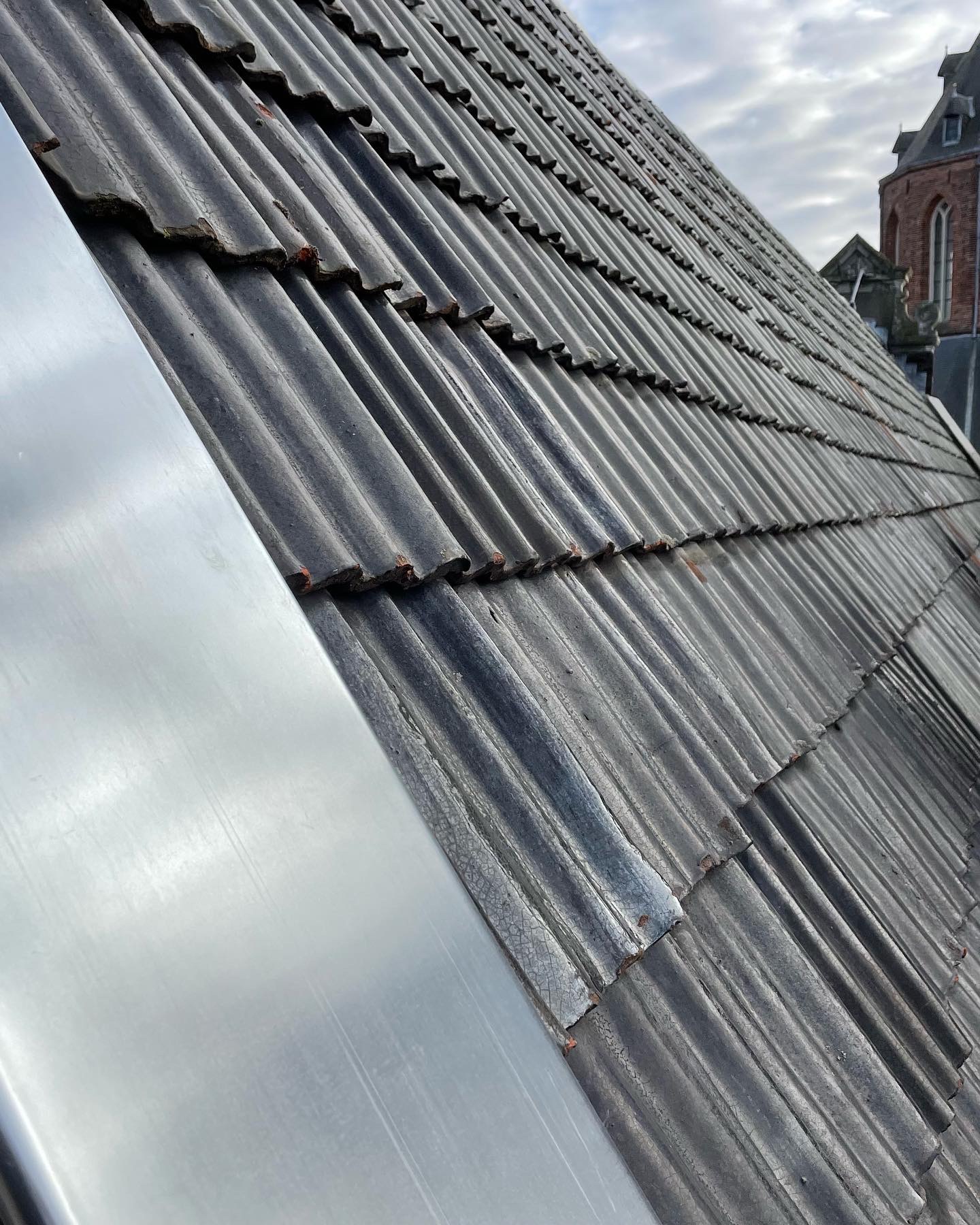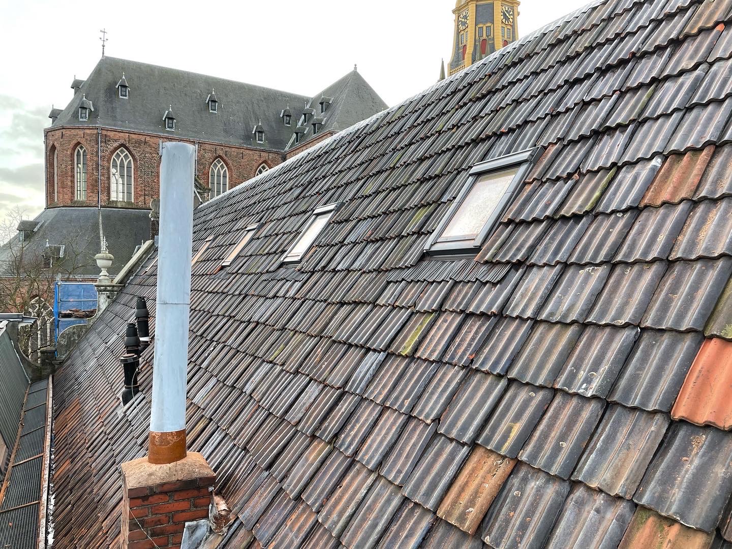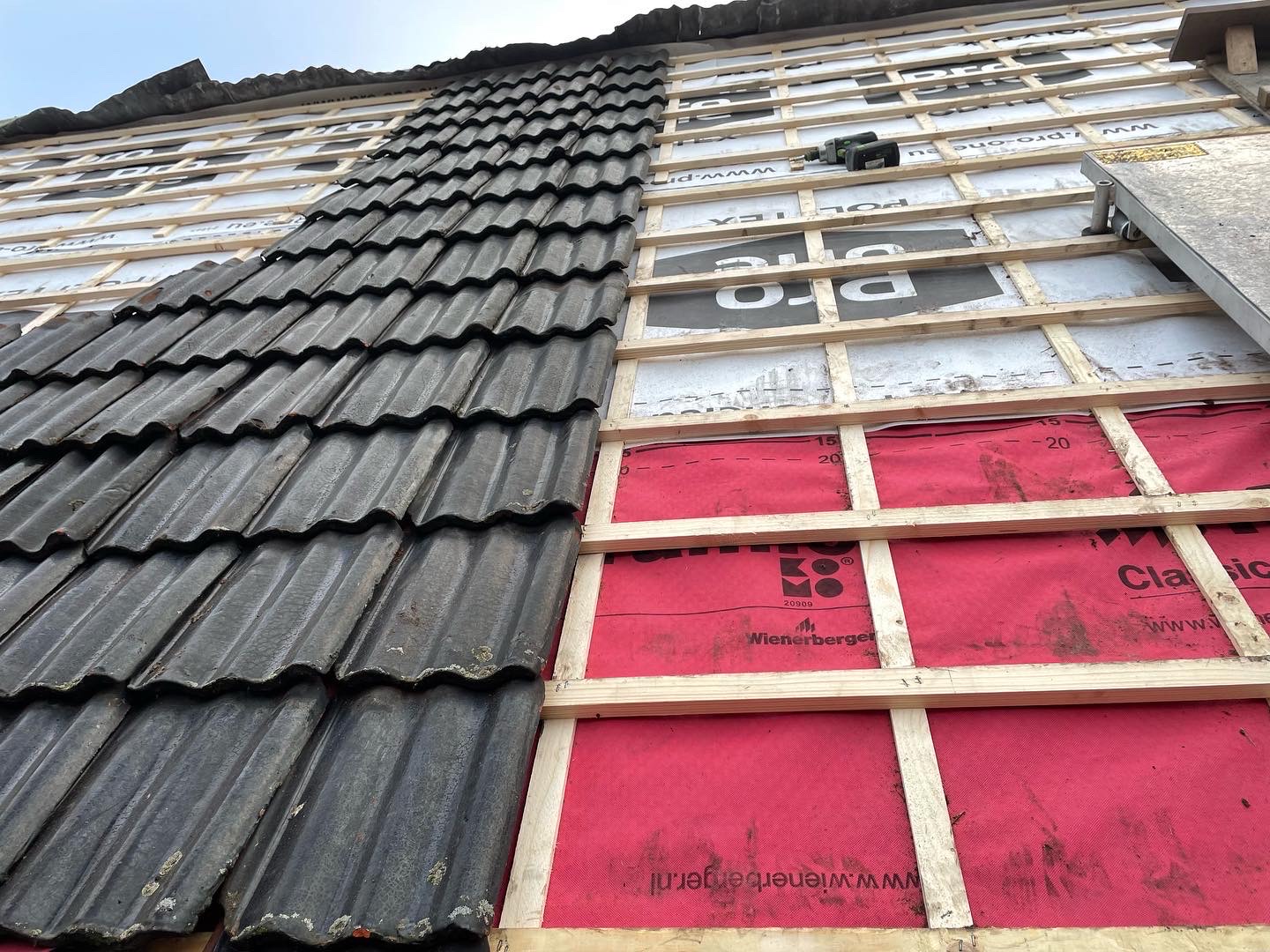Alle dakpannen zijn verwijderd en ter plekke gesorteerd. Vervolgens is het dak voorzien van een dampopenfolie en zijn er nieuwe tengels en panlatten geplaatst.