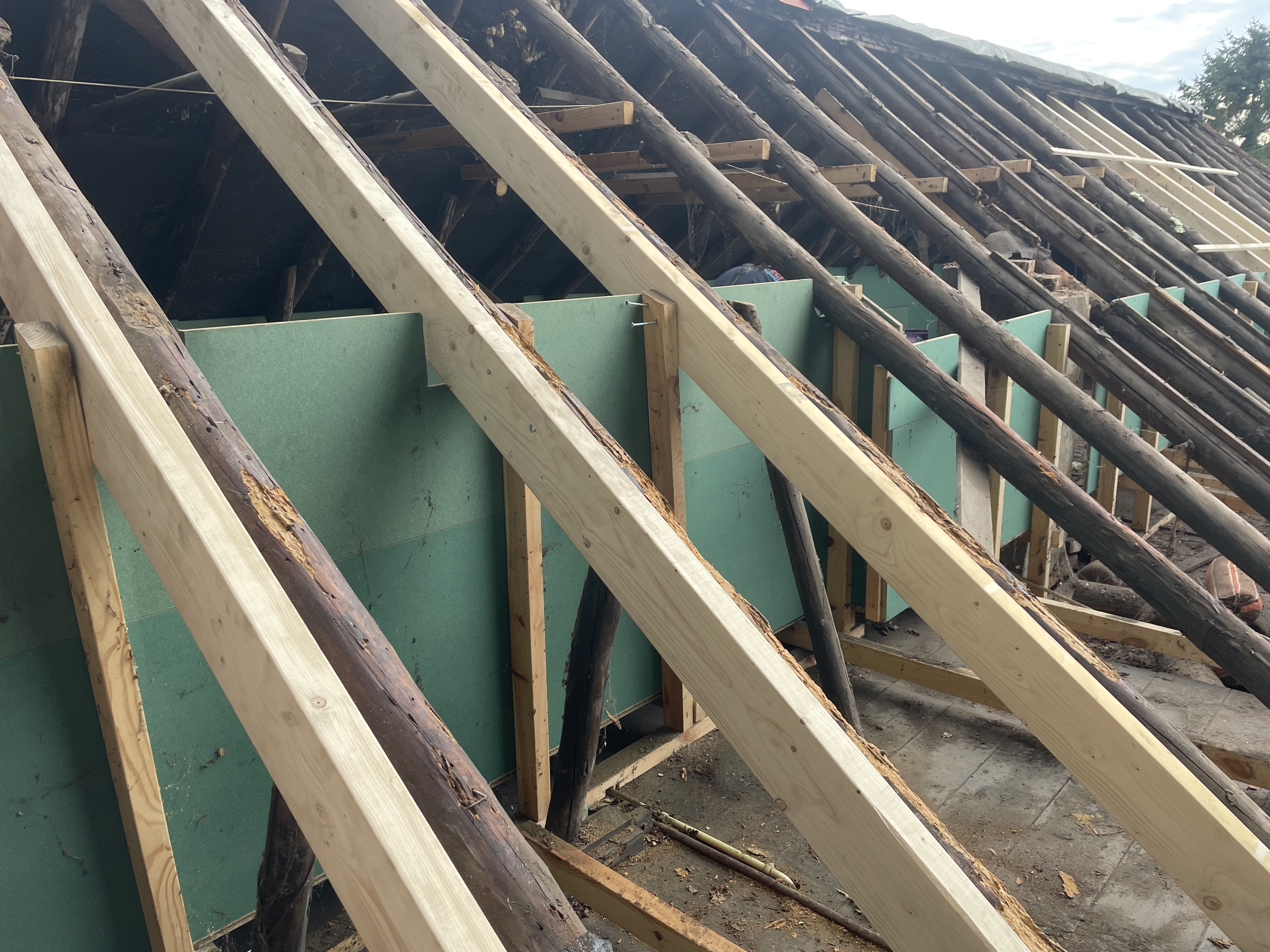 Alles is verwijderd tot op de sporen. Een aantal sporen waren aangetast door houtworm. Dat is eerst behandeld en de sporen zijn verstevigd. Ook waren sommige sporen zover doorgebogen (meer dan 10 cm) dat we daar nieuwe sporen naast gezet hebben.