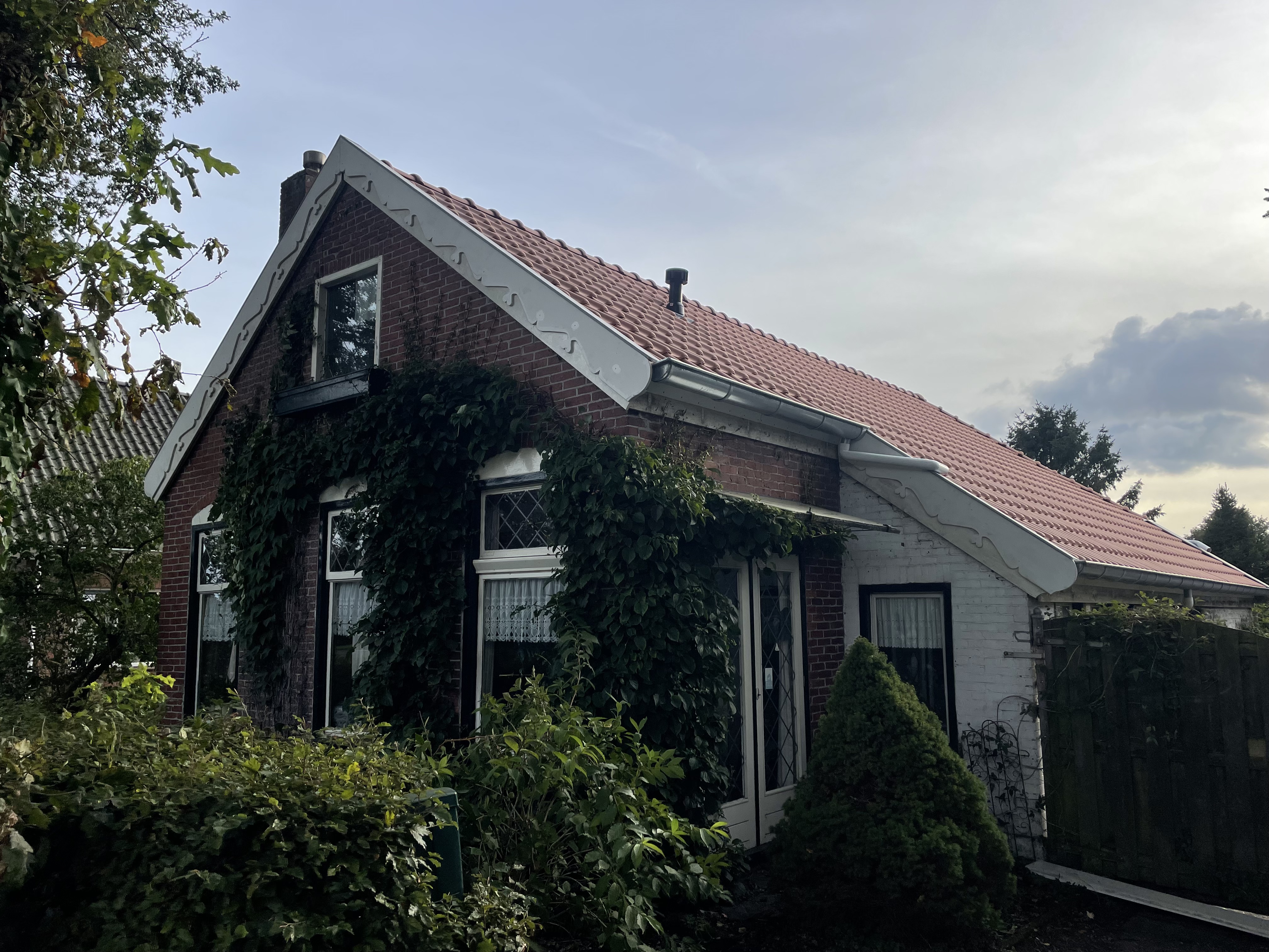 Ook is er weer een nieuwe zinken dakgoot geplaatst zoals het hoort. Speciaal op verzoek van de eigenaar zijn de boeidelen voorzien van een versiering. En, voor de toekomst ook 12 Zonnepanelen met totaal 4,8 KW geïnstalleerd vermogen.